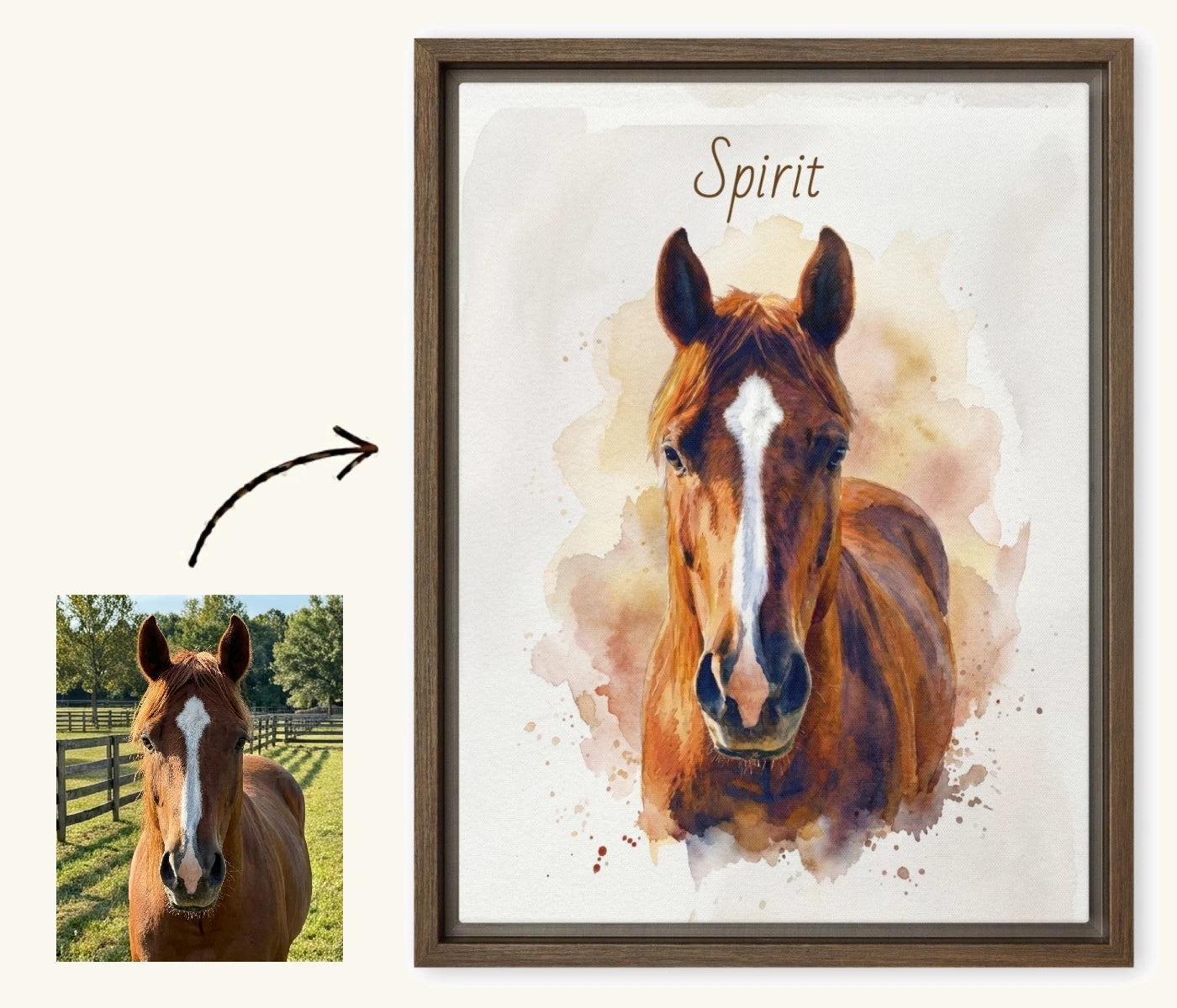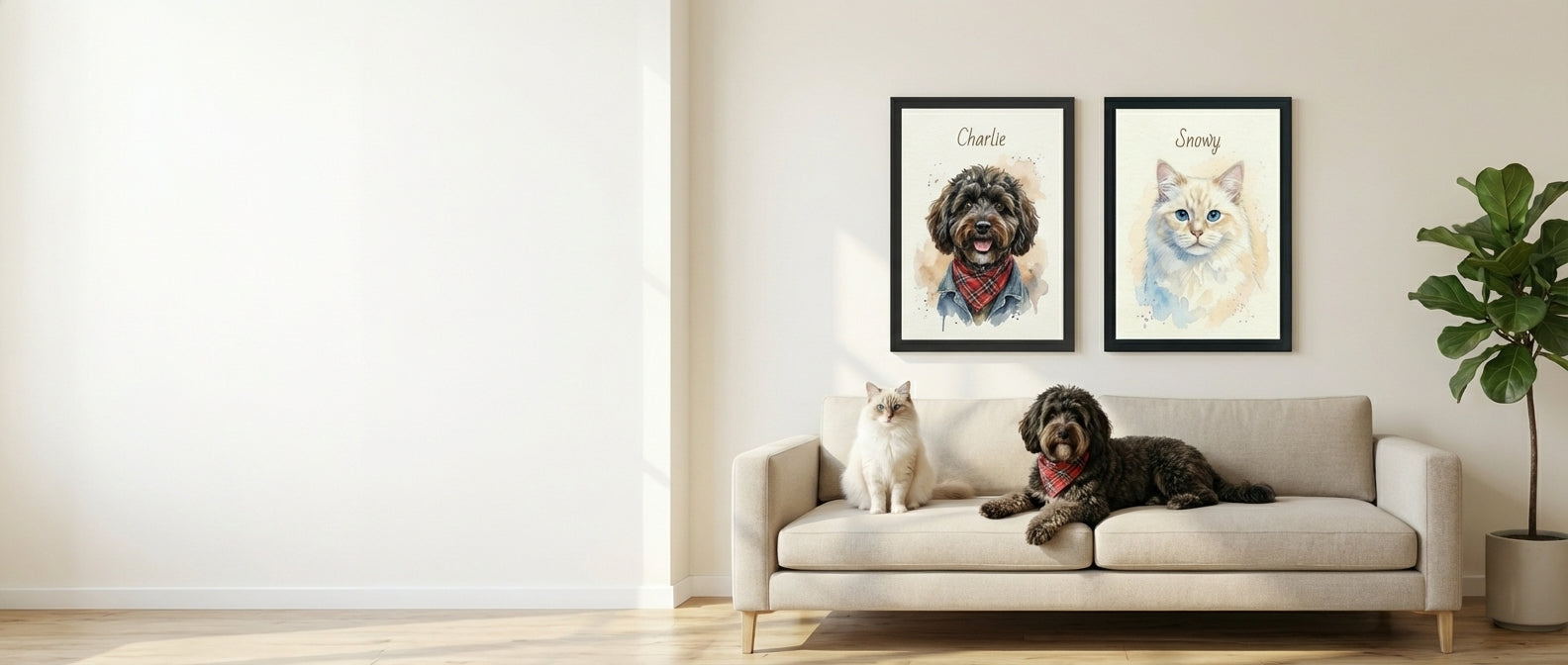 Upload your pet’s best selfie and select the size, framing, and finish that suit your space.