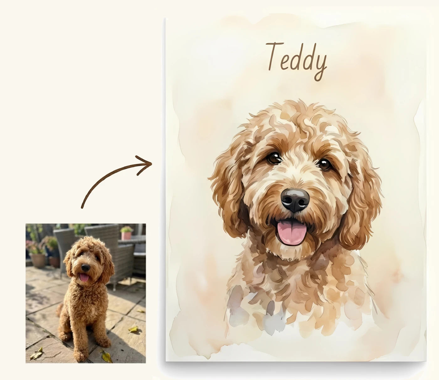 Our digital artists have designed artwork for everything from dogs and cats to birds, horses, bunnies, and even hedgehogs — every pet deserves to be celebrated in art.